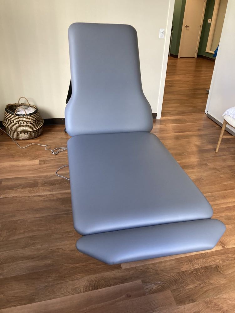 Upgraded crescent massage headrest is a sturdier headrest than found on portable therapy tables.